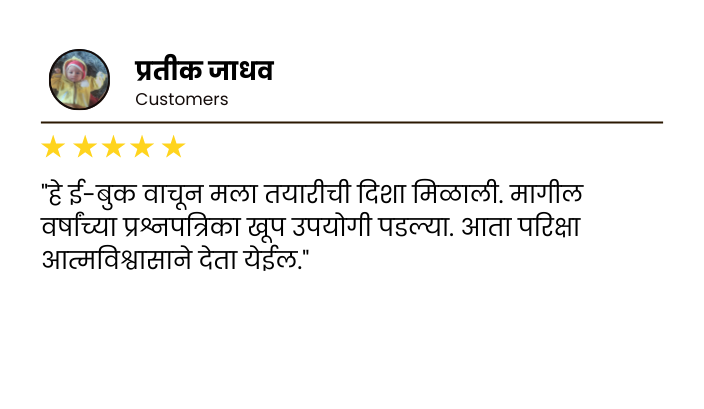 - 20+ जुन्या प्रश्नपत्रिका – पूर्ण सोडवलेल्या – पेपर कसा येतो ते समजतं – प्रश्न पुन्हा पुन्हा येतात हे लक्षात येतं